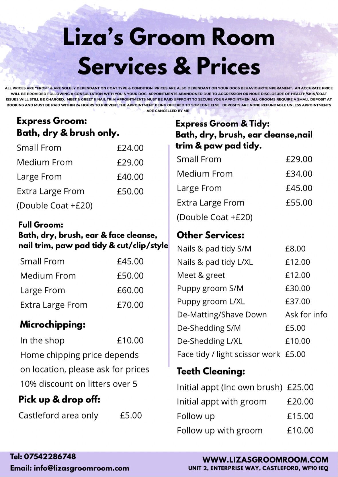 Liza's Groom Room, a professional one to one grooming service, where your dogs comfort & safety is the utmost priority. City & Guilds Certified, first aid trained, fully insured & DBS checked. Banned breeds welcome, provided your pooch adheres to government regulations & is of sound temperament.